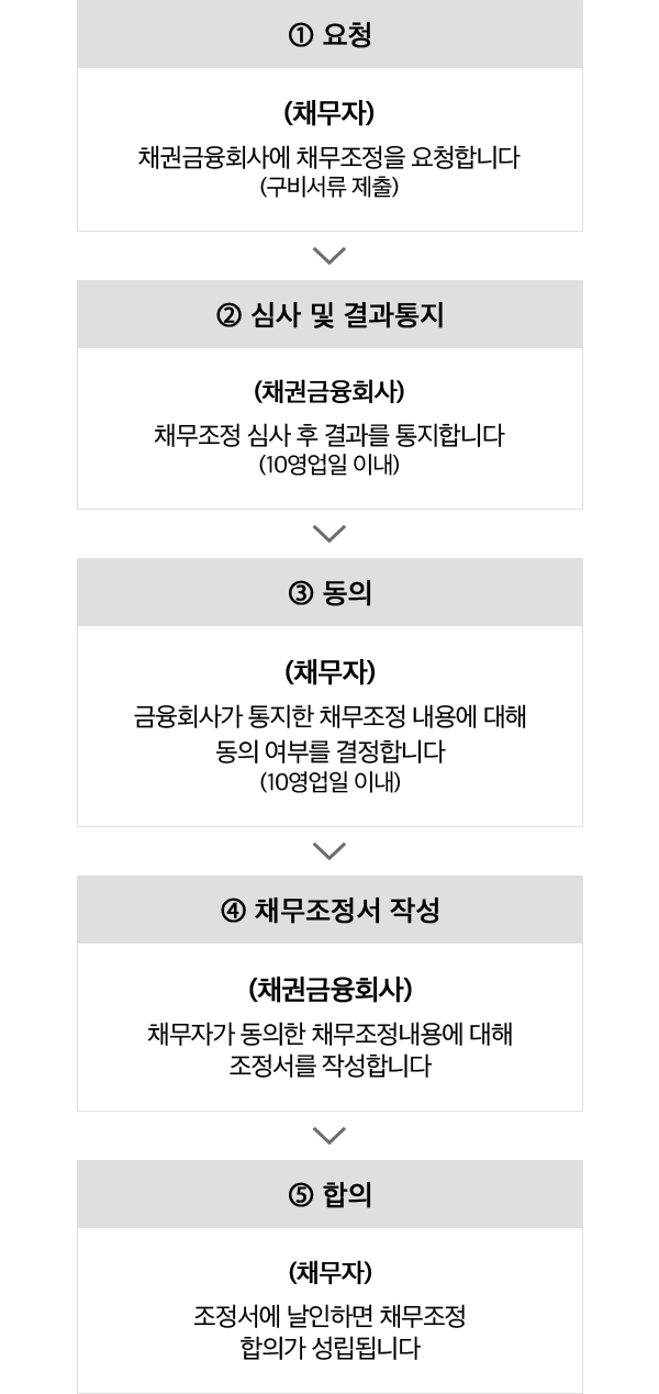 - 5. 합의 : (채무자) 조정서에 날인하면 채무조정 합의가 성립됩니다.