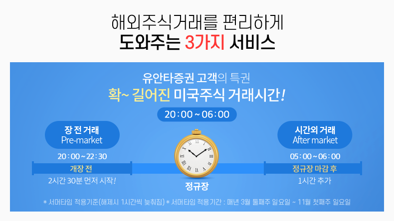 유안타증권 고객의 특권 확~ 길어진 미국주식 거래시간! 20:00~06:00