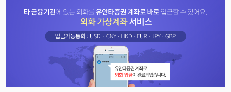 타 금융기관에 있는 외화를 유안타증권 계좌로 바로 입금할 수 있어요. 외화 가상계좌 서비스