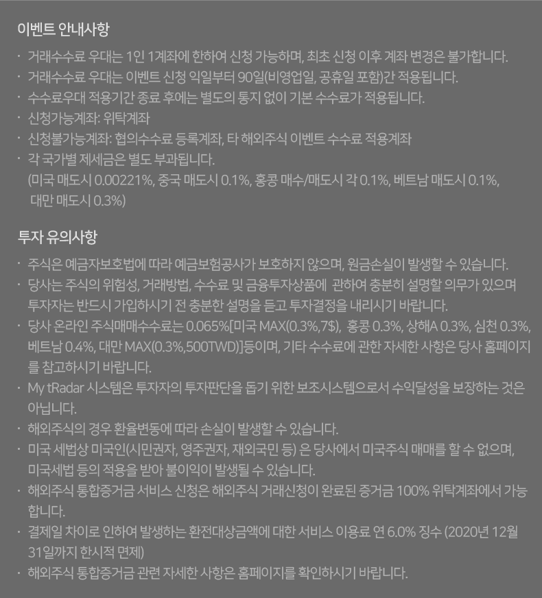 - 신청불가능계좌 : 협의수수료 등록계좌, 타 해외주식 이벤트 수수료 적용계좌