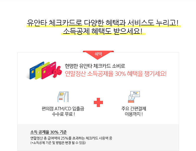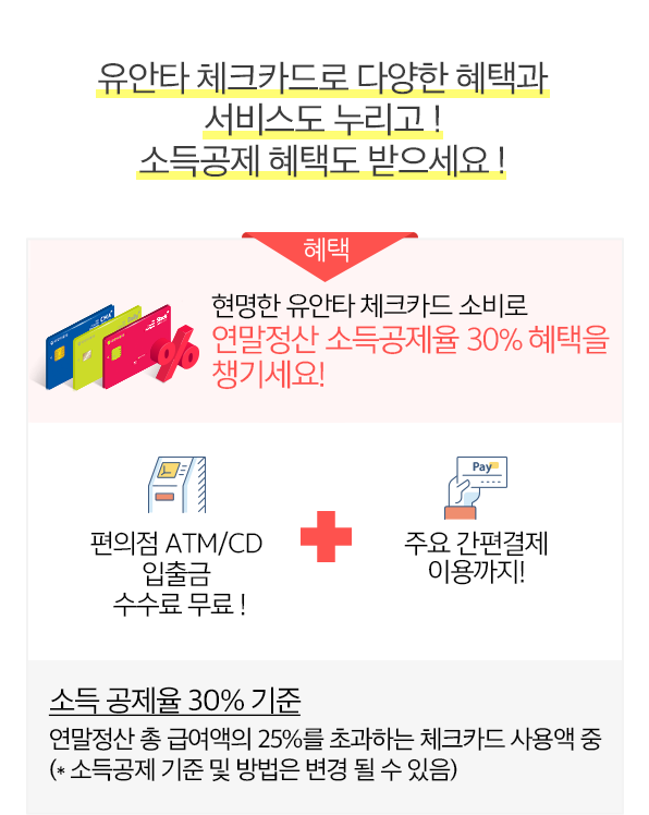 - 혜택. 현명한 유안타 체크카드 소비로 연말정산 소득공제율 30% 혜택을 챙기세요!