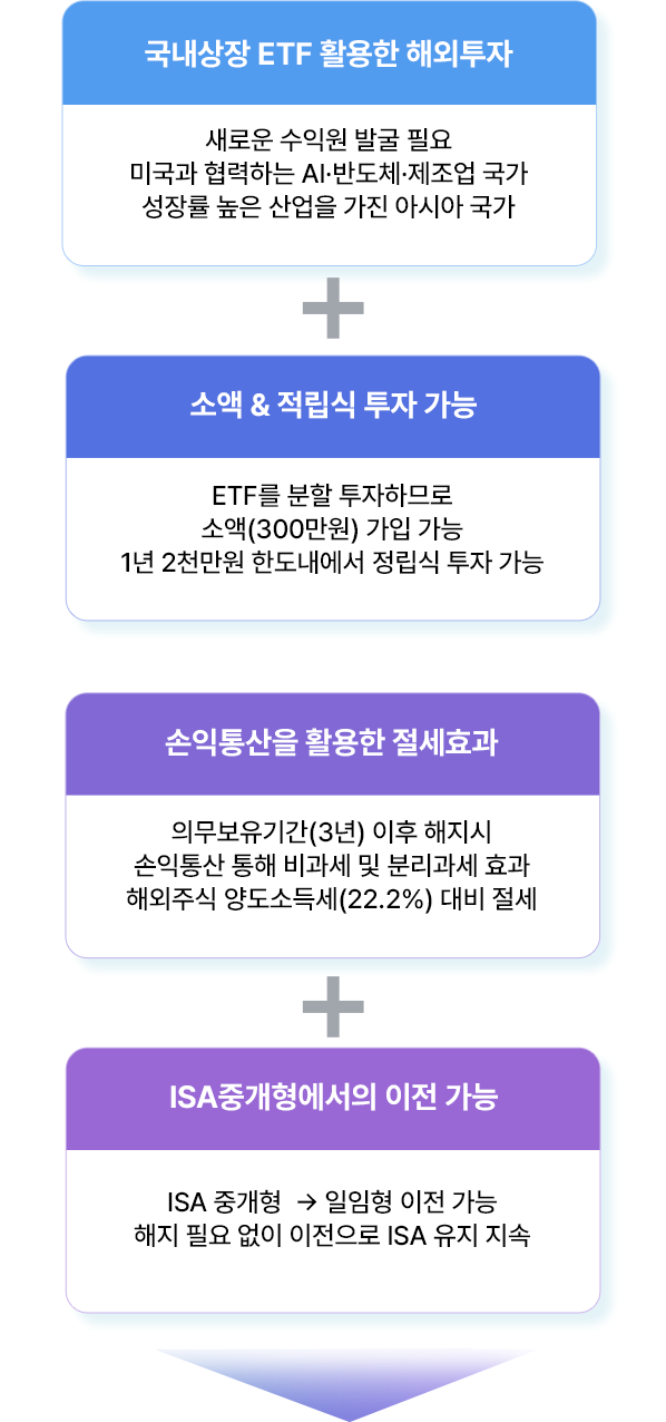 - 국내 상장주식 매매차익은 비과세이므로 국내 주식형펀드에서 손실이 발생하더라도 ISA내 예금, 다른 펀드 등에서 발생한 이익과