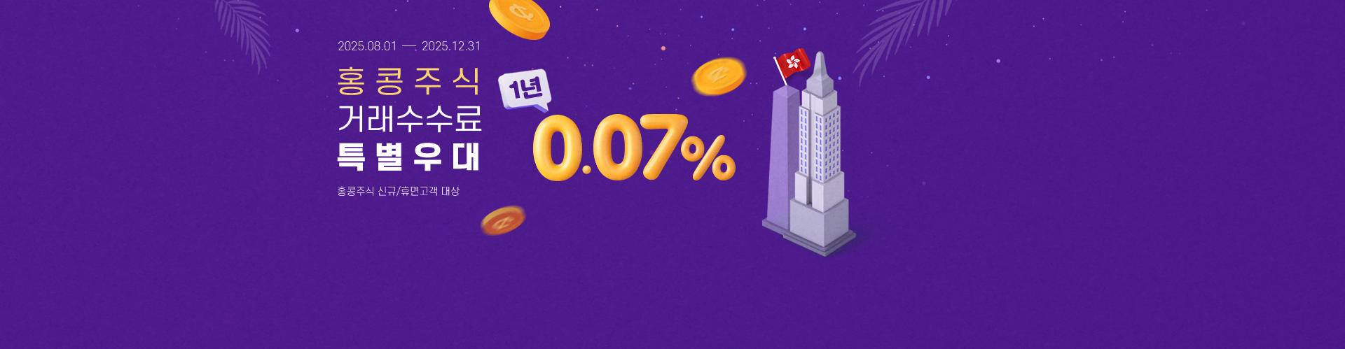 홍콩주식 거래수수료 특별우대 1년 0.07%