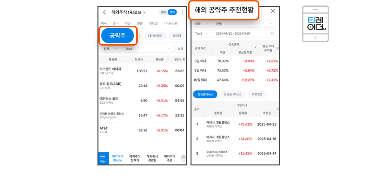 티레이더 고유 알고리즘으로 오늘의 공략주 자동포착,